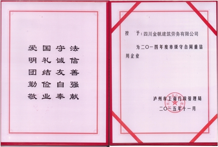 金帆全國優(yōu)秀建筑勞務(wù)企業(yè)