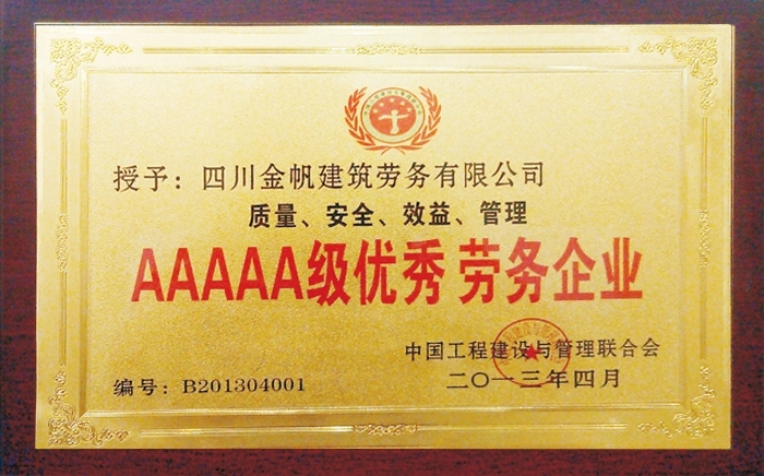金帆五A級優(yōu)秀勞務(wù)企業(yè)